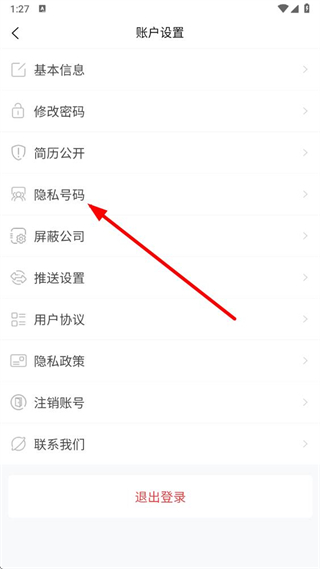 3、在賬戶設(shè)置頁面點(diǎn)擊隱私號(hào)碼選項(xiàng),進(jìn)入隱私號(hào)碼設(shè)置頁面。