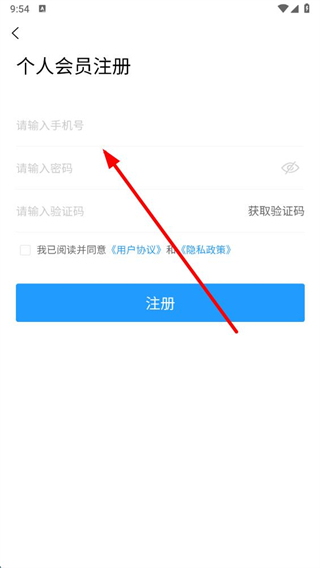 3、進(jìn)入個(gè)人會(huì)員注冊(cè)頁面后,輸入手機(jī)號(hào)、密碼和驗(yàn)證碼。