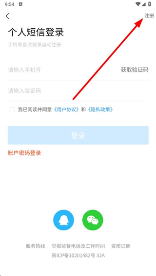 2、在登錄頁面,點(diǎn)擊右上角注冊(cè)選項(xiàng)。