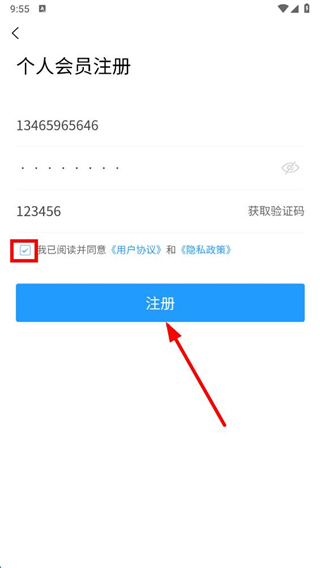 4、勾選同意用戶協(xié)議和隱私政策后,點(diǎn)擊注冊(cè)按鈕即可完成注冊(cè)操作。