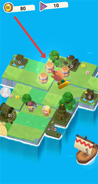 1、點(diǎn)擊地圖上的木桶區(qū)域,觸發(fā)資源獲取或區(qū)域解鎖。