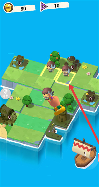 2、點(diǎn)擊角色,使其移動(dòng)到指定區(qū)域,獲取武器,提升角色能力。