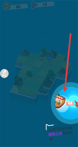 4、點(diǎn)擊右下角的“突襲”按鈕,乘坐船領(lǐng)士兵開始作戰(zhàn)。