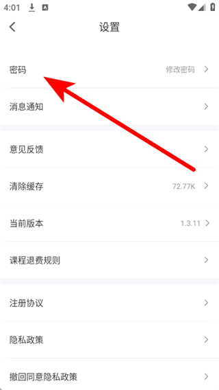 3、在設(shè)置界面里,點(diǎn)擊密碼選項(xiàng),進(jìn)入修改密碼頁面。
