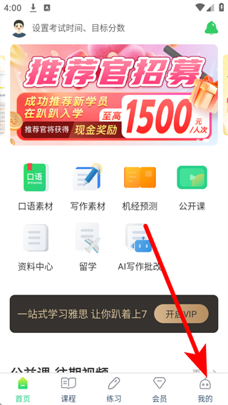 1、打開趴趴雅思APP,點(diǎn)擊底部導(dǎo)航欄的我的選項(xiàng),進(jìn)入個(gè)人頁面。