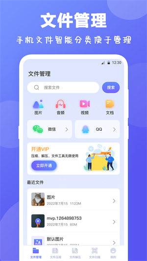 - 將所有的文件進(jìn)行圖片、音頻、視頻、文檔等類(lèi)型分類(lèi)管理,同時(shí)還能分類(lèi)管理微信、QQ等應(yīng)用的文件。