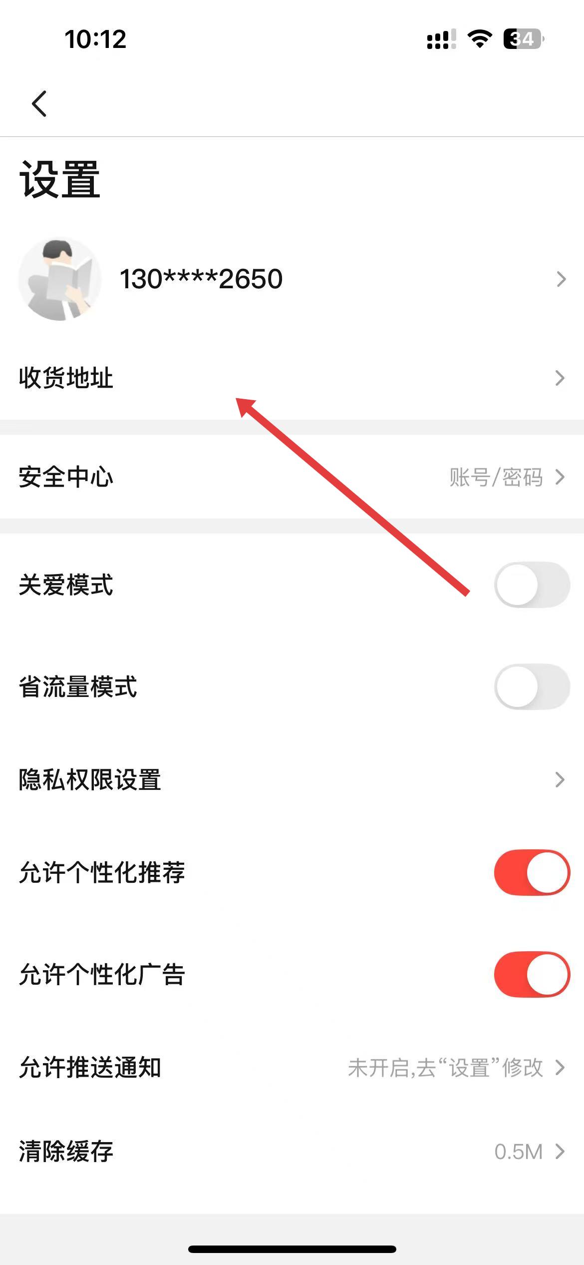 2、進入設置頁面后,找到收貨地址選項并點擊進入。