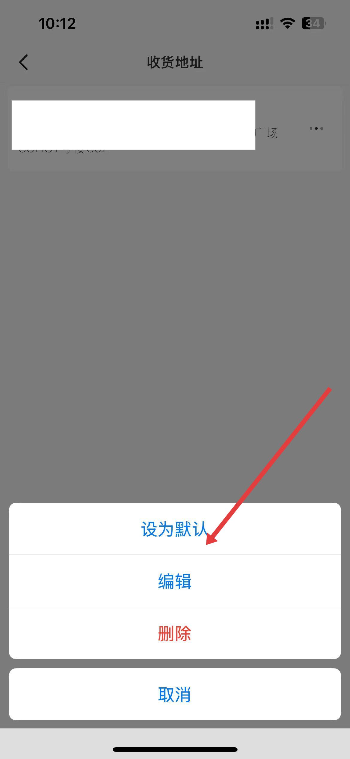 3、在收貨地址頁面,選擇想要修改的地址,點擊后會彈出操作選項框,點擊編輯然后在編輯頁面中修改具體的收貨地址信息,修改完成后保存即可。