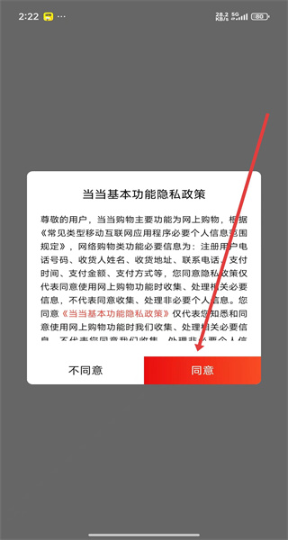 1、在打開當當App后,可以點擊彈窗中的同意按鈕,進入使用。
