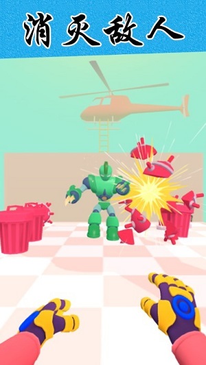 玩家需要扮演一個超級繩索英雄來將敵人打趴下,如何一次性擊飛兩個機器人?玩家需要來大量練習射出的繩索,可以一次性來攻擊兩個敵人,控制著機器人往我們這里跑,也可以利用著大量的道具來為我們幫助著。
