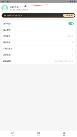 3、進入主頁內(nèi),點擊注冊/登錄的區(qū)域。