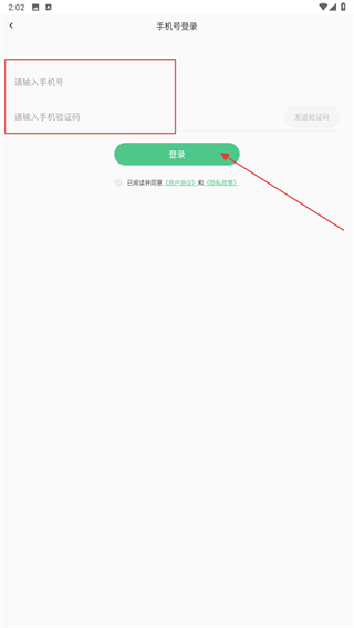 4、在手機號登錄的頁面內(nèi),輸入要登錄的手機號以及驗證碼,再點擊登錄的按鈕即可。