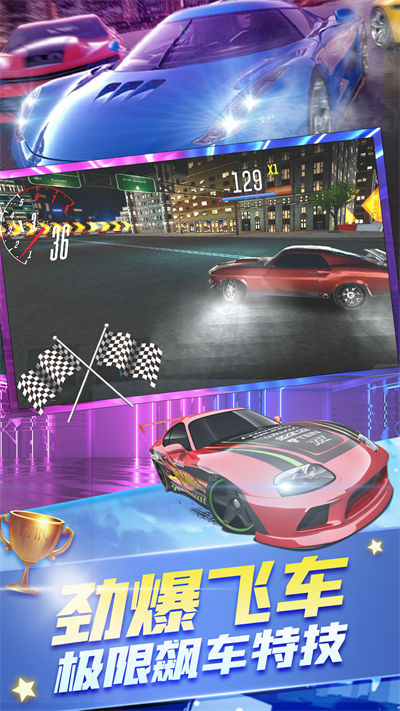 2、控制賽車從高速行駛,盡量加快漂移獲得高額的分?jǐn)?shù),更好的表現(xiàn)