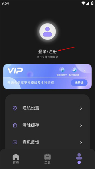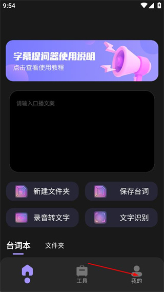 1、打開字幕提詞器軟件,點(diǎn)擊右下角“我的”,進(jìn)入個(gè)人頁面。
