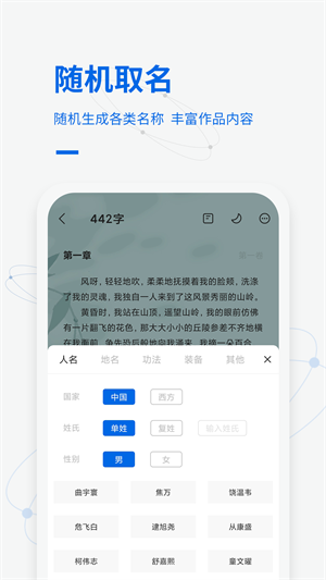 - 使用隨機(jī)取名工具,可以隨機(jī)為你的小說角色們?nèi)∶?,中方、西方名字全都有,隨機(jī)取名,告別取名廢;