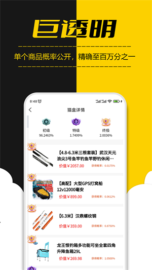 2、每個商品都清晰標注獲得率,兌換數(shù)額、提貨運費,全部透明,用戶放心;