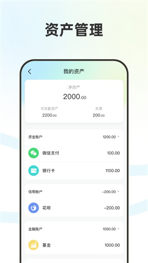 5、資產(chǎn)賬戶余額匯總,隨時隨地掌握財務(wù)狀況;