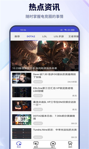 - 每日在線更新熱點資訊,帶來最新的電競賽事消息動態(tài),每日更新帶來最新動態(tài),可以更好了解電競賽事;