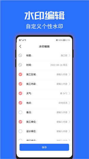 - 為用戶提供的水印類型也非常多,包括了、時(shí)間、地點(diǎn)、天氣、經(jīng)緯度、名片、疫情防控、建筑工程、考勤打卡等;