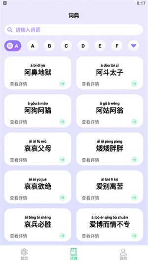 - 每個成語為你帶來拼音拼讀、成語釋義等,讓大家可以更好的學(xué)習(xí),在線學(xué)習(xí)成語,掌握每一個成語;