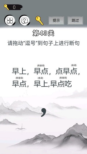 3、是一個使用中國傳統(tǒng)文化漢字為背景的畫線斷句的游戲。