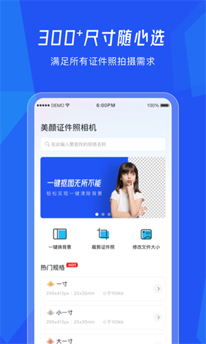 美顏?zhàn)C件照相機(jī)可以幫助需要拍攝證件照的所有用戶都能更輕松的獲得精美的照片,提供的所有功能也是可以非常輕松的使用,幫助所有用戶都可以輕松的在線編輯出自己需要的一些證件照,還有很多的證件照的規(guī)格可以直接的在線選擇。