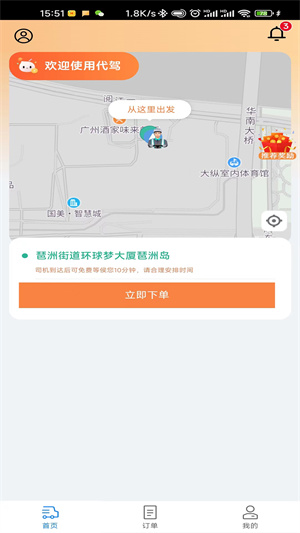 1、【首頁(yè)】首頁(yè)可以定位您當(dāng)前的位置,點(diǎn)擊【立即下單】,一鍵下單,方便快捷;