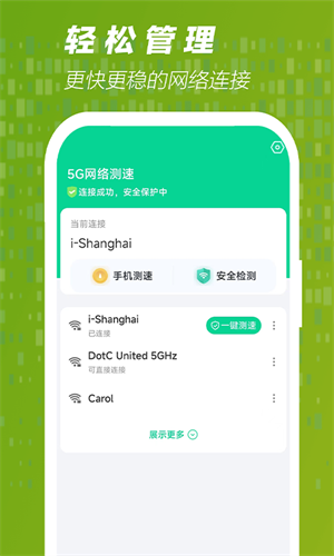 5G網(wǎng)絡(luò)測速是手機上的網(wǎng)絡(luò)管家,擁有豐富的WiFi網(wǎng)絡(luò)服務(wù)給大家使用,輕松暢享上網(wǎng),擁有多樣的服務(wù)提供給大家隨時使用,便捷設(shè)置帶來大家所需功能,多樣的功能服務(wù)隨時使用,享受安全上網(wǎng)服務(wù),解決大家遇到的網(wǎng)絡(luò)問題。