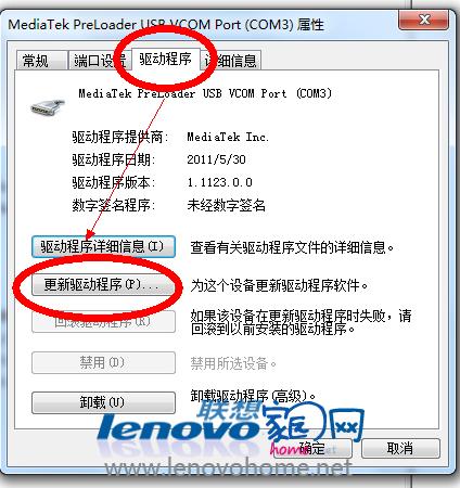 在這里,特別要說明下,因?yàn)閣in7兼容性問題,驅(qū)動比較難裝,當(dāng)顯示驅(qū)動安裝完成之后,需要再重復(fù)一次,也就是拔掉手機(jī),然后再插上,重復(fù)剛剛的步驟,安裝一次驅(qū)動,如果你的win7可以安裝驅(qū)動的話,這時候它就可以自動安裝驅(qū)動,如果你重復(fù)了三四次以上,都還是一樣出現(xiàn)感嘆號的MT65XX開頭的驅(qū)動的話,很遺憾,這表示你的WIN7裝不了線刷驅(qū)動,此時,需要換一臺電腦,建議使用XP系統(tǒng)的;