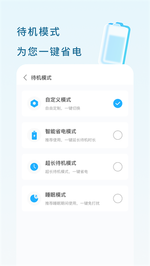 - 多樣的待機(jī)模式自由選擇設(shè)置,一鍵開啟手機(jī)省電模式,智能省電模式、超長待機(jī)模式、睡眠模式等;