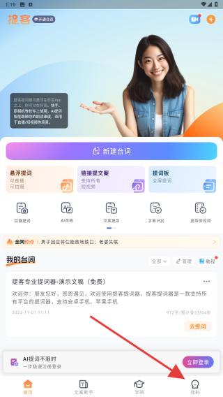 1、打開提客提詞器APP,在首頁內點擊右下角我的圖標。