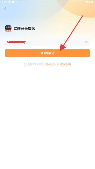 3、在登錄的界面內,輸入需登錄的手機號,再點擊獲取驗證碼的按鈕。