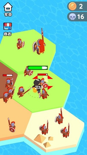 1、使用金幣就可以來召集更多的士兵為我們戰(zhàn)斗,打敗敵人;