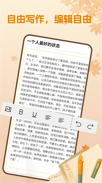 - 多種寫作資料素材,讓你的寫作觸手可及,每天都能在線創(chuàng)作,有需要隨時(shí)找回,告別找資料的煩惱。