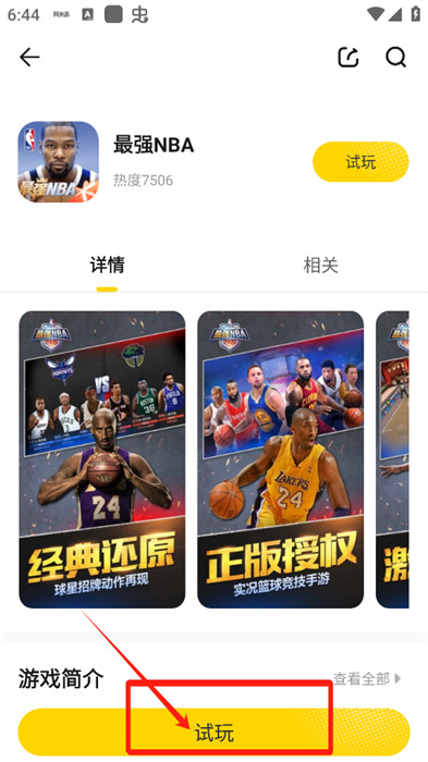 4、最后進入到詳情頁中,這里有著圖文和視頻介紹,直接點擊下方【試玩】按鈕,可以快速體驗游戲的內容,十分的便利。