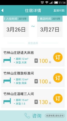 4.用戶可以在線進(jìn)行房間預(yù)訂,并且提供了全天的在線咨詢服務(wù)。