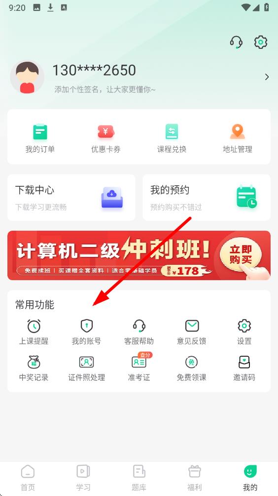 2、進(jìn)入我的頁面后,找到常用功能板塊,點(diǎn)擊其中的我的賬號(hào)選項(xiàng),進(jìn)入到我的賬戶設(shè)置界面。