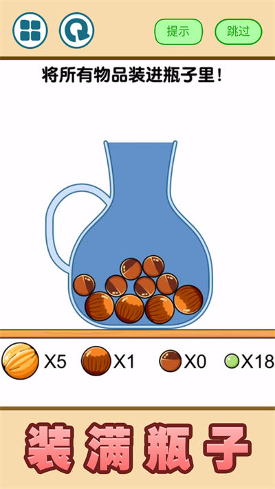 -把所有的球球都塞進瓶子里,千萬不能讓堅果掉出來哦;