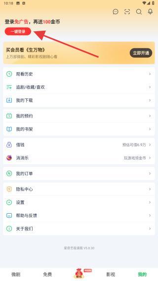 2、在我的頁(yè)面頂部,找到并點(diǎn)擊下方的一鍵登錄的按鈕,彈出登錄選項(xiàng)彈窗。