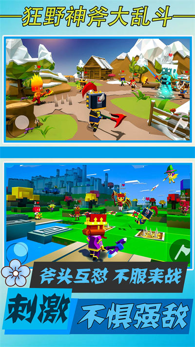 你和其他玩家在線和離線對(duì)戰(zhàn),爭(zhēng)取盡可能長(zhǎng)的生存,玩家爭(zhēng)取在有限的空間里生存,成為活著的贏家,我們的狂野神斧大亂斗非常好玩,帶來(lái)更加狂放的游戲風(fēng)格,還有更加粗狂的游戲畫面效果。