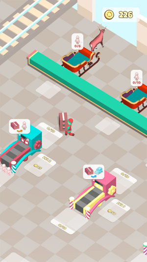 1、非常休閑的放置游戲玩法,我們需要把自己生產(chǎn)好的玩具來(lái)放到指定的位置;