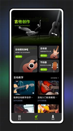 3、吉他在線模擬彈唱,提供彈唱曲譜邊學邊實踐;