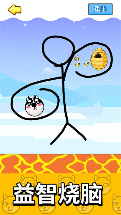 玩家需要在其中想到各種解謎方式,會(huì)有各種不同的情況會(huì)出現(xiàn),玩家需要盡可能的一次性拯救兩個(gè)狗頭,在其中還有各種蜜蜂的位置也會(huì)改變,帶來(lái)更加困難的游戲難度。
