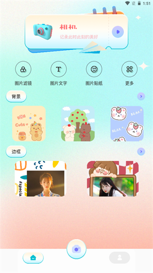 - 帶來大家所需要的圖片編輯服務(wù),可以對拍攝的照片進行修圖,添加濾鏡、貼紙等,還有潮流玩法可解鎖;
