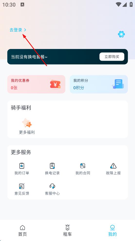 2、在應(yīng)用主界面,點(diǎn)擊右下角我的,進(jìn)入個(gè)人頁(yè)面,看到去登錄字樣后,點(diǎn)擊進(jìn)行登錄操作。