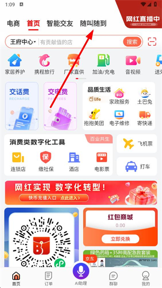 1、打開嗖嗖app,點(diǎn)擊頂部的隨叫隨到選項(xiàng),進(jìn)入相關(guān)頁面。