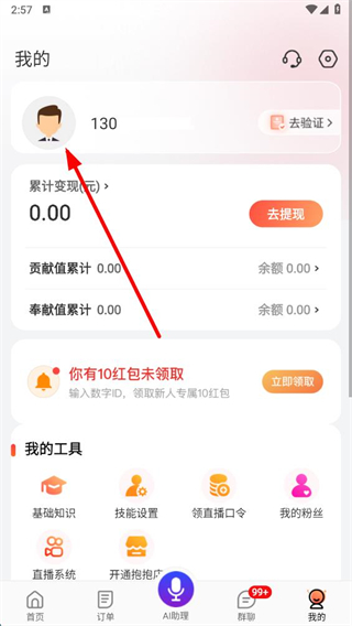 2、在個(gè)人頁面,點(diǎn)擊頭像區(qū)域,進(jìn)入個(gè)人資料頁面。