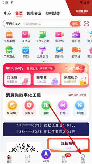 1、打開電子紅包app,點(diǎn)擊右下角我的選項(xiàng),進(jìn)入個(gè)人頁面。
