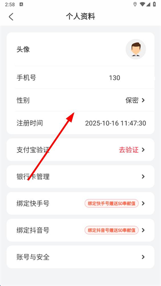3、在個(gè)人資料頁面,可對(duì)性別等個(gè)人信息進(jìn)行修改,修改完成后即可更新個(gè)人信息。
