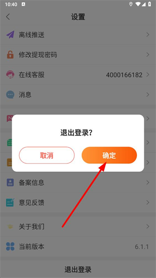 4、在彈出的退出登錄確認(rèn)窗口中,點(diǎn)擊確定按鈕,即可完成嗖嗖的賬號(hào)退出操作。
